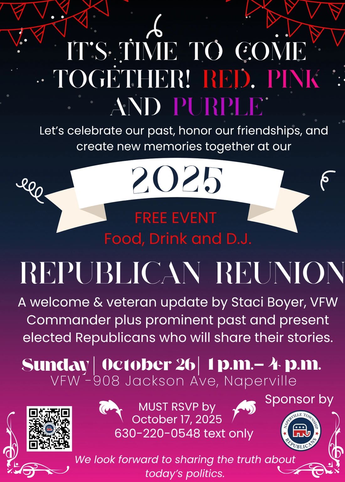 WTRO meetings are generally held on the second Monday of each month at Spartan Ale House located at 3032 English Rows Ave, Naperville. Our meetings are always informative and important toward maintaining a strong Republican Party in our township. All Republican office holders and constituents are invited to appear. If you are interested in learning more about our organization, join us at one of our meetings or contact us by e-mail: contact@wtro.org